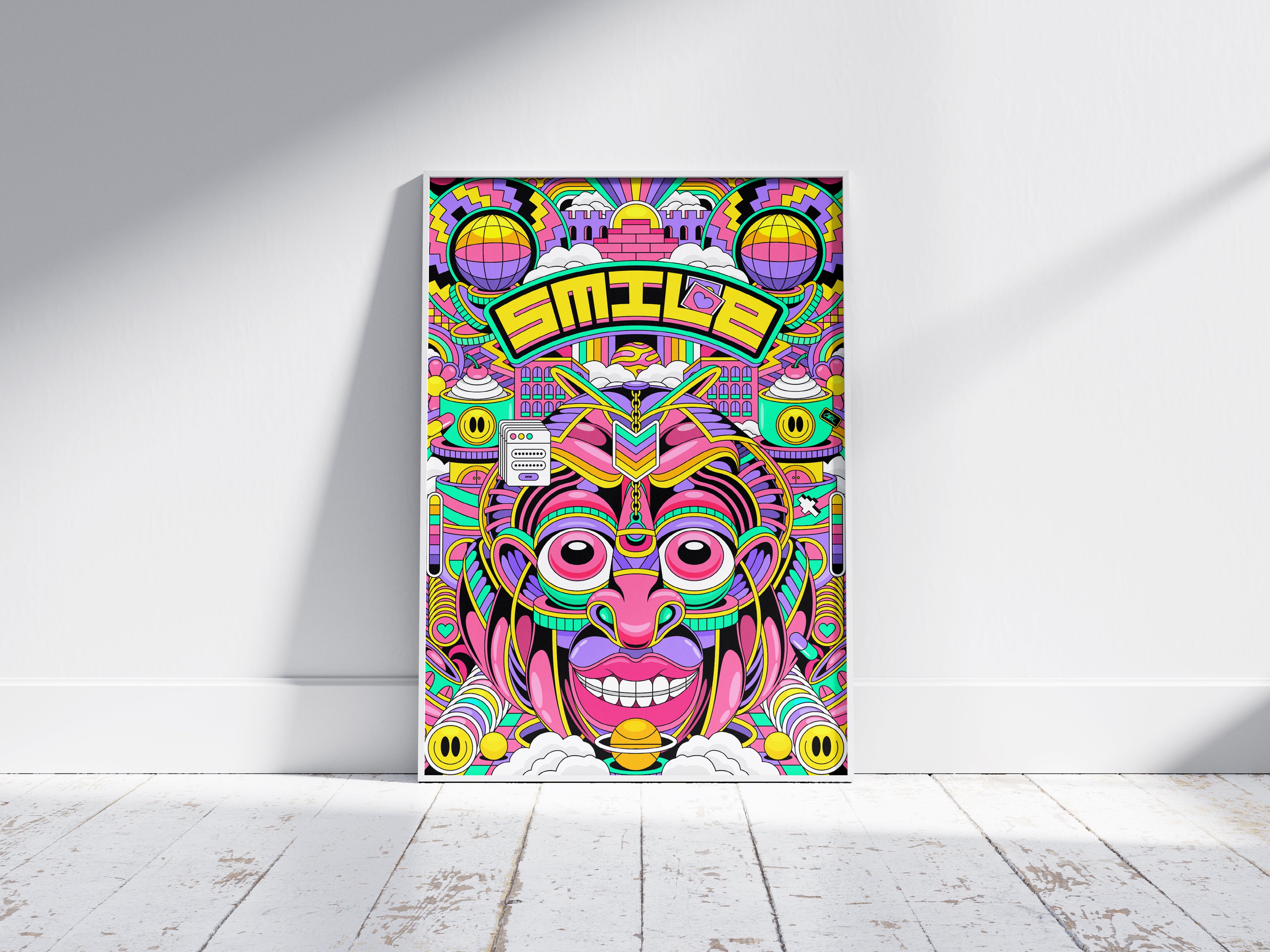 I am a London based illustrator & motion designer who inspires movement and positivity through my creativity. I draw inspiration from my surroundings and sounds, be it signage, lyrics or simply overheard conversations to create bold and colourful designs bursting with energy. If you like bright colours and beautiful textures , then what could be better than a big bright, Positive Poster in your living room? You know you want this on your wall!